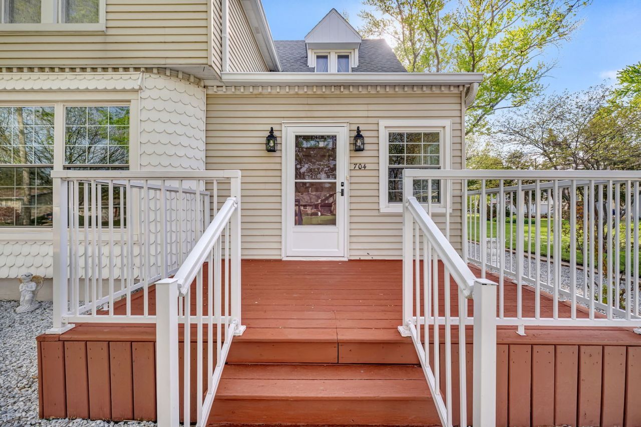 Situated on an oversized lot, this storybook home offers modern updates and timeless charm. The main level features a large living room with a wood-burning fireplace, built-ins, crown molding, and 9-foot ceilings. The updated kitchen includes oak cabinetry, quartz countertops, under-cabinet lighting, and stainless steel appliances-along with a built-in workstation and large pantry cabinet. The first floor also offers a dry bar, bedroom, full bathroom, laundry room, and a flexible fourth room ideal for an office, nursery, or storage. Upstairs are two generously sized bedrooms with original character and a second full bath. Enjoy outdoor living on the expansive 600+ sq.ft. deck. This property also features a 3-car garage with ample space for vehicles, tools, and recreational equipment. Located near schools, parks, and ponds, this home is ready to write its next chapter with you. Most recent updates include 3rd garage bay (2021), AC unit (2024), decking (2024), range (2024), and dishwasher (2024).